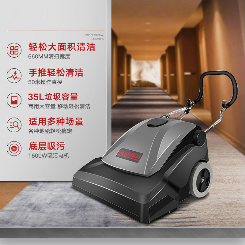 揚子YZ-DT2地毯吸塵器660mm清潔寬度,真空吸塵裝置高效電機深入里層吸出各種微塵、皮屑、毛發等,35L大容量塵箱無需反復傾倒長效清潔。