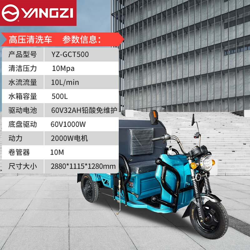 揚(yáng)子YZ-GCT500純電動高壓清洗車,市政環(huán)衛(wèi)、綠化灑水、道路降塵移動沖洗一步到位,500L大容量水箱持久清洗無須反復(fù)加水。