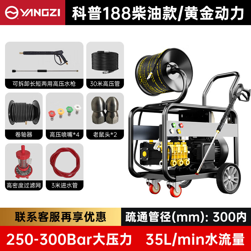 揚子管道疏通機C系列水老鼠下水道神器大功率柴油款物業小區市政清洗機